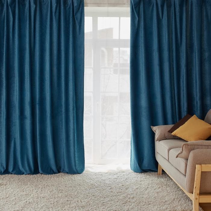 Штора портьерная «Этель» 230*270 см Валенсия Лазурный ,100% п/э