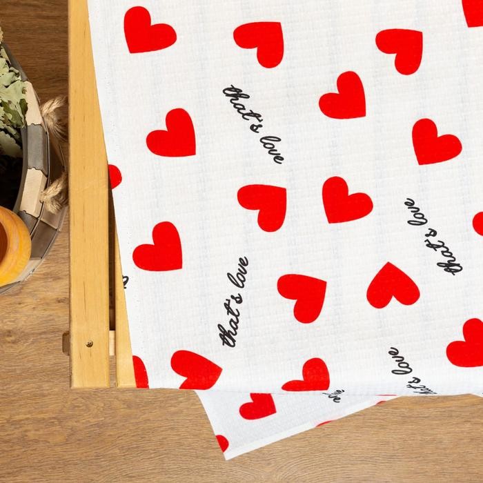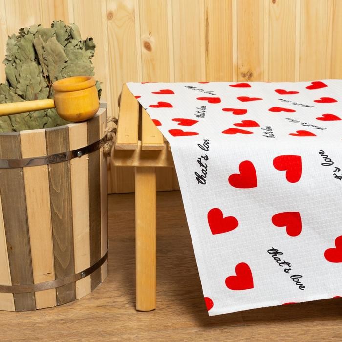 Простыня для бани «Сердечки» 150×180±5 см, 100% хлопок, вафельное полотно, 160 гр/м2
