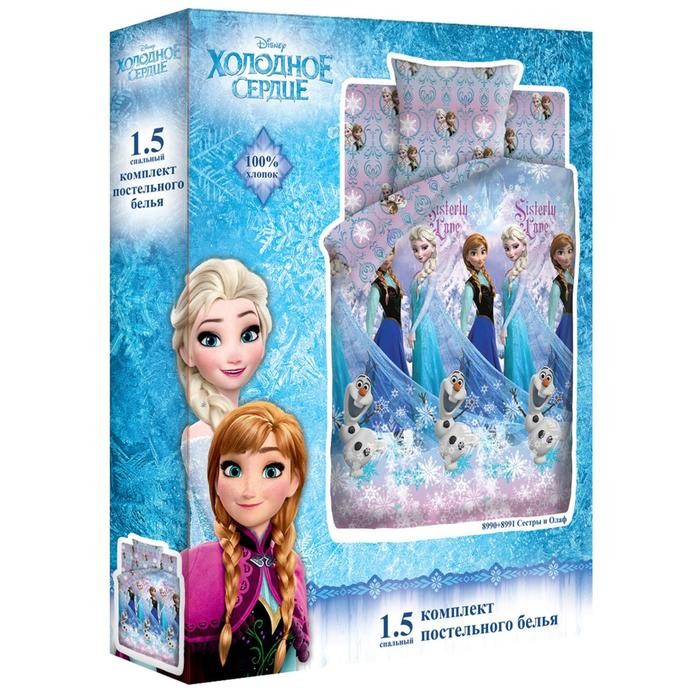 Постельное бельё 1.5 Холодное сердце Сёстры и Олаф 143×215, 150×214, 50×70 см, бязь 120 гм хлопок 100%