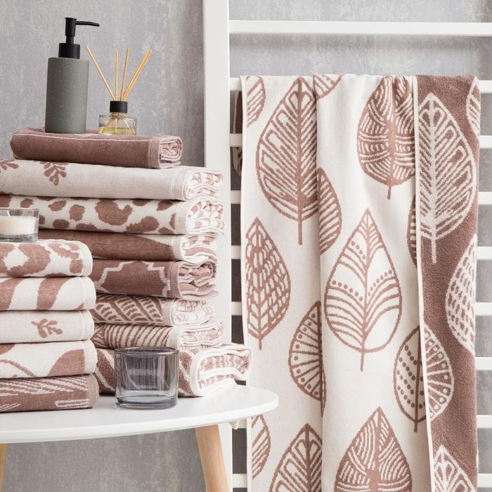 Полотенце махровое Этель Foliage беж, 70×130 см, 100% хл, велюр, 420 гр/м2