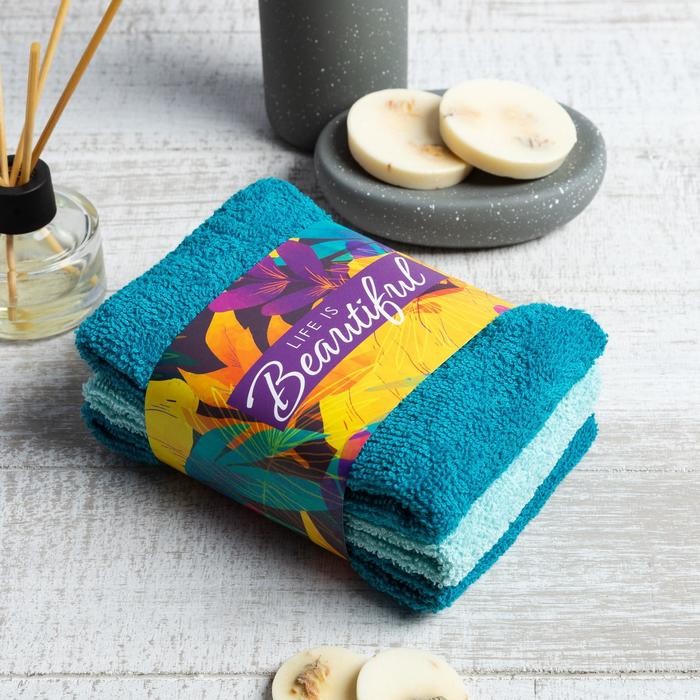 Набор махровых полотенец Life is beautiful 30×30 см — 3 шт, 100% хлопок 340 гр/м2