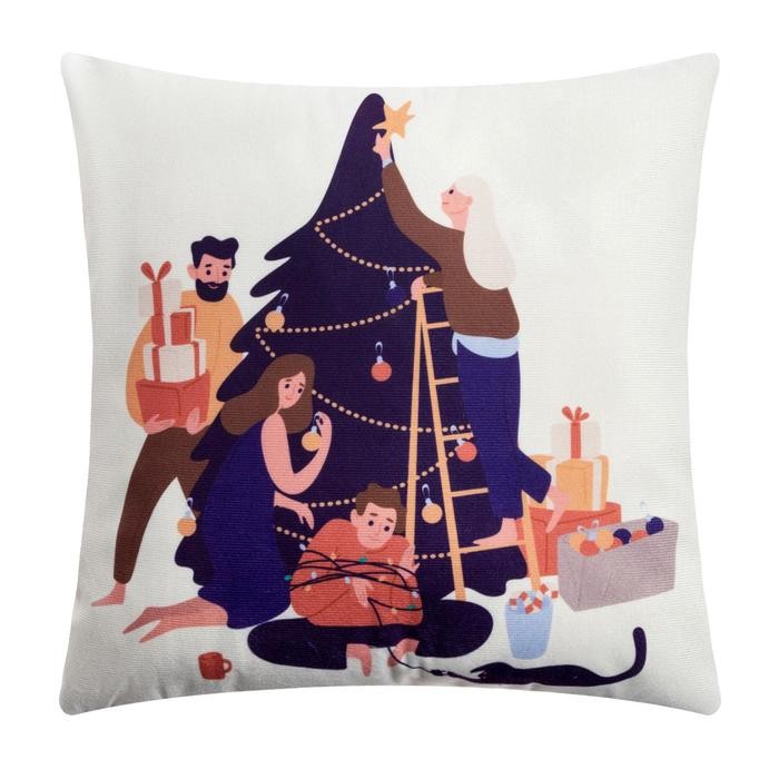 Новогодняя наволочка декоративная Этель «Семейный праздник» 40×40 см, 100% п/э