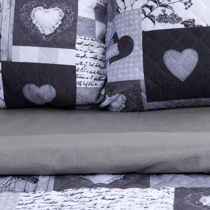 Комплект «Этель» Grey heart, покрывало 180×220 ±5 см и наволочки 50×70 — 2 шт, микрофибра