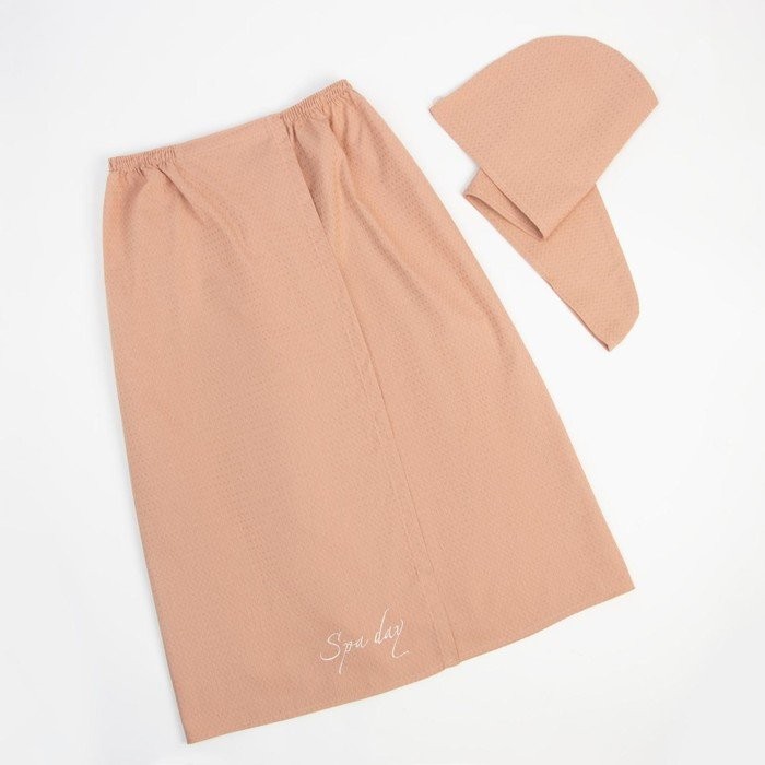 Набор для бани Spa day жен.парео 80×150±4 см, чалма, 100% хл., ваф.полотно, беж., 160 гр/м2