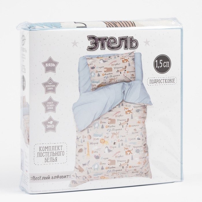 Постельное белье Этель 1,5 сп «Веселый алфавит» 143×215 см, 150×214 см, 50×70 см -1 шт