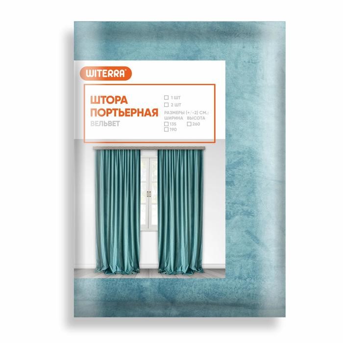Штора портьерная Вельвет однотонный 135×260 см, морская волна, пэ 100%