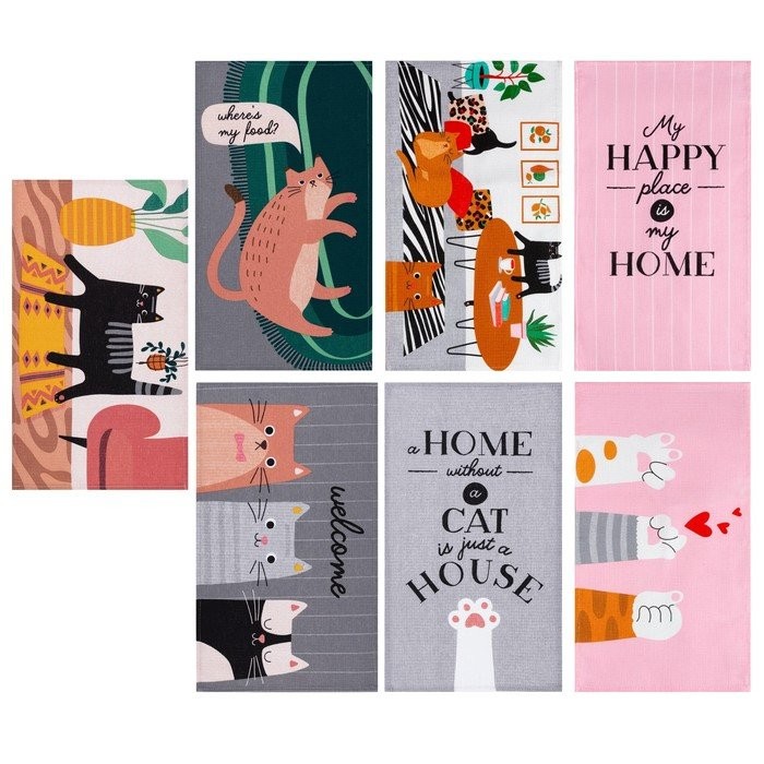 Набор кухонных полотенец Доляна Сats 35х60см-7шт, 100% хл