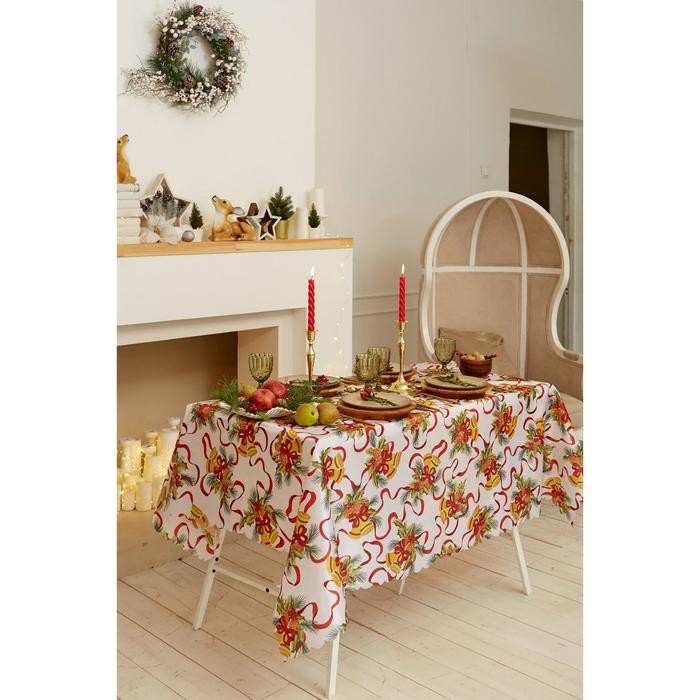 Скатерть Доляна «Новый год: Новогодние колокольчики» 145*300 +/- 2 см, 100% п/э