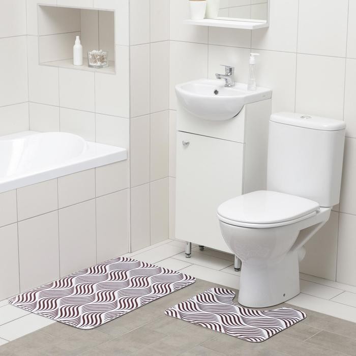 Набор ковриков для ванны и туалета Доляна «Волна», 2 шт: 50×80, 40×50 см, цвет коричневый