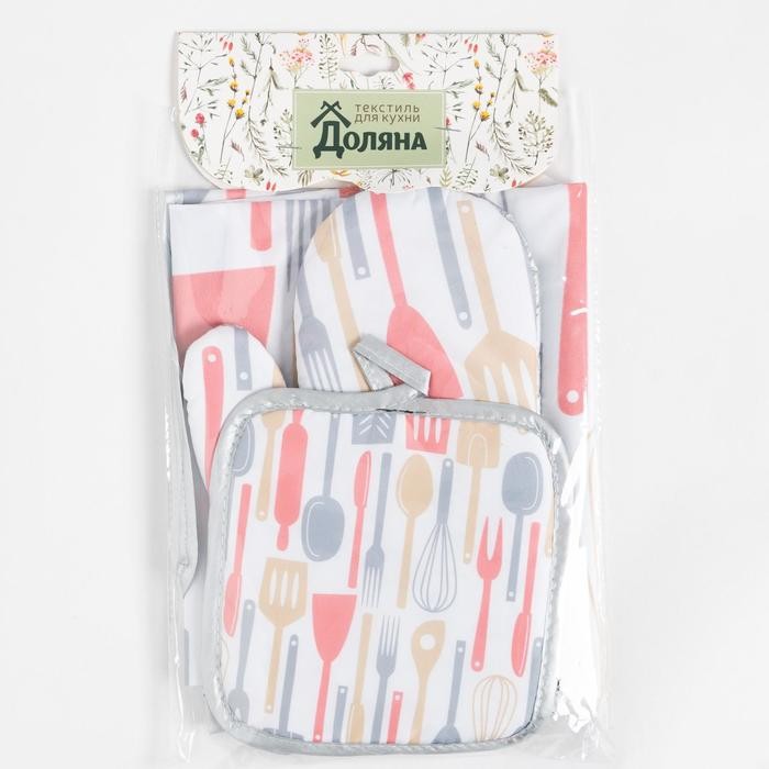 Кухонный набор Доляна «Кухня», прихватка 17*17 см, рукавица 26*16 см, фартук 70*80 см 100% п/э