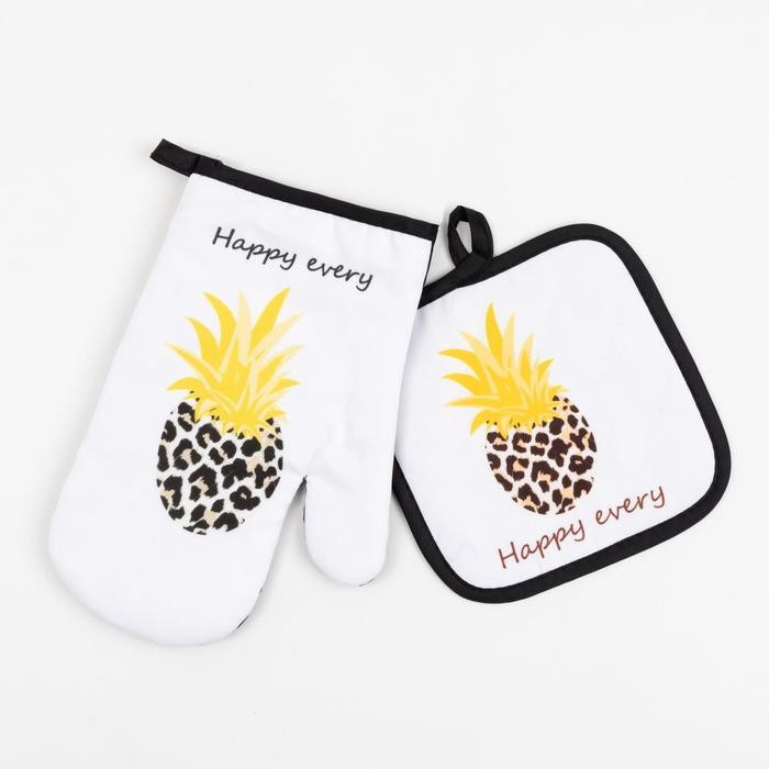 Кухонный набор Доляна Happy every прихватка 17*17 см, варежка-прихватка 26*16 см, 100% п/э