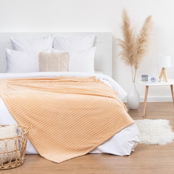 Плед Этель «Клетка» 180*200 см, цв.бежевый, корал-флис, 240гр/м2, 100% полиэстер