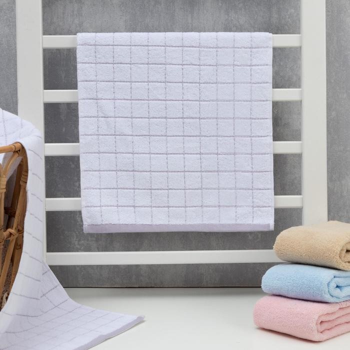 Полотенце махровое Этель «Клетка» цв.белый, 34*70 см, 350 гр/м2, 100% хлопок