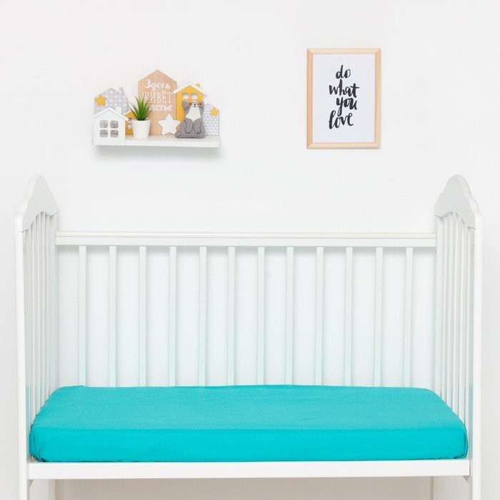 Простыня прямоугольная «Крошка Я» 100×160 см, бирюзовый, 100% хл, поплин