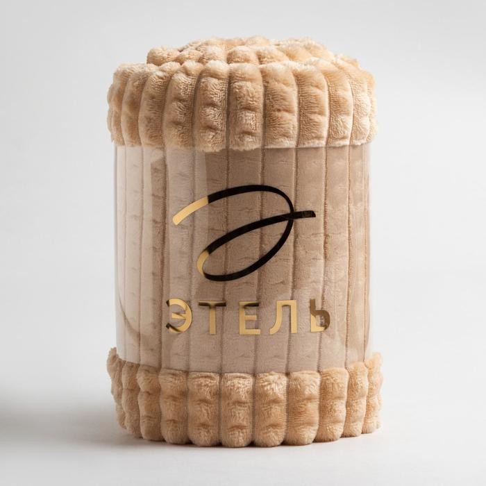 Плед Этель «Клетка» 200*220 см, цв.бежевый, корал-флис, 240гр/м2, 100% полиэстер
