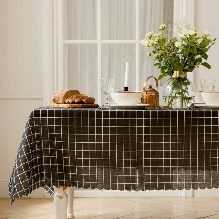Скатерть Доляна «Клетка"цв.черный 145×145±3см,100%пэ, рогожка 130 гр/м