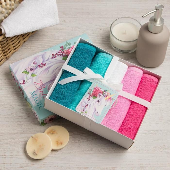 Набор махровых салфеток «Believe in magic» 30×30 см -5шт, 100% хл, 340гр/м2