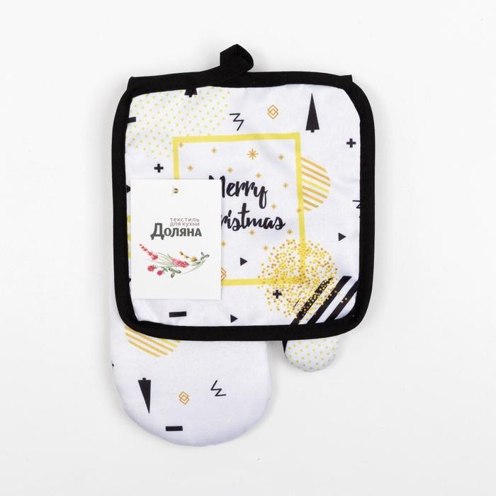 Кухонный новогодний набор Доляна Merry Christmas, прихватка 17*17 см, варежка 25*17 см,100% п/э