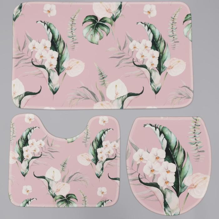 Набор ковриков для ванны и туалета Доляна «Фло», 3 шт: 50×80 см, 50×40 см, 38×43 см