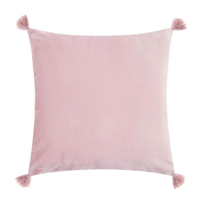 Наволочка на подушку с кисточками Этель цвет розовый, 45×45 см, 100% п/э, велюр