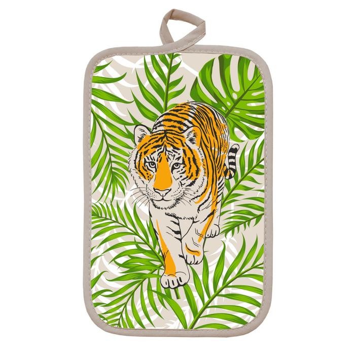 Прихватка Тигр в листьях 14×22 см, беж, хлопок 100%, 200г/м2