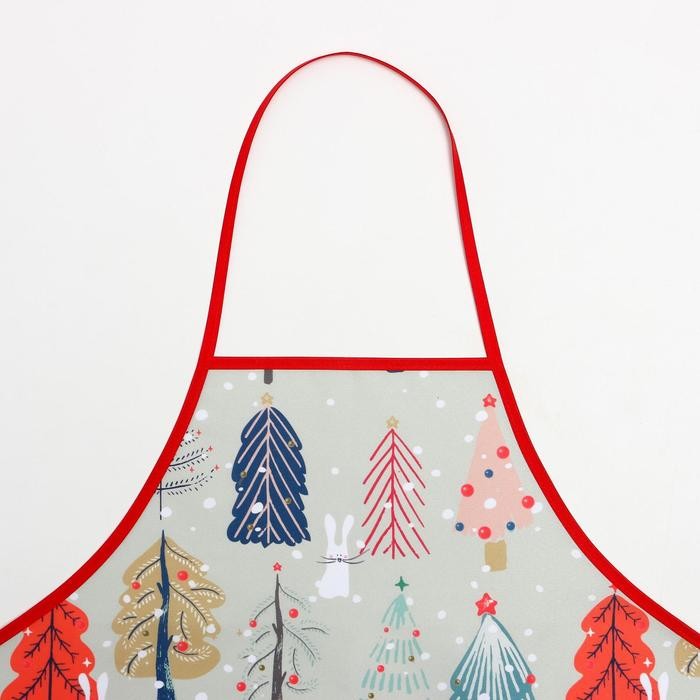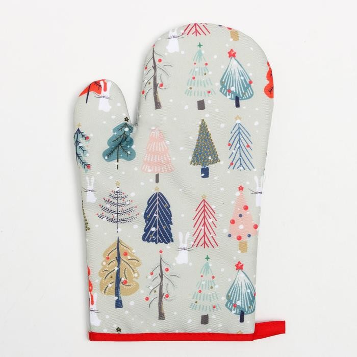 Кухонный новогодний набор Доляна«Новогодний лес» фартук 70х80см, прихватка 17х17см, варежка-прихватка 26х16см