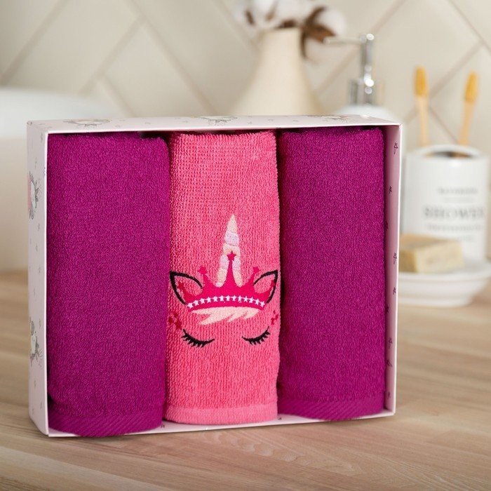 Набор полотенец Экономь и Я «Единорожек» 30*60 см-3шт, 100% хл, 320 г/м2