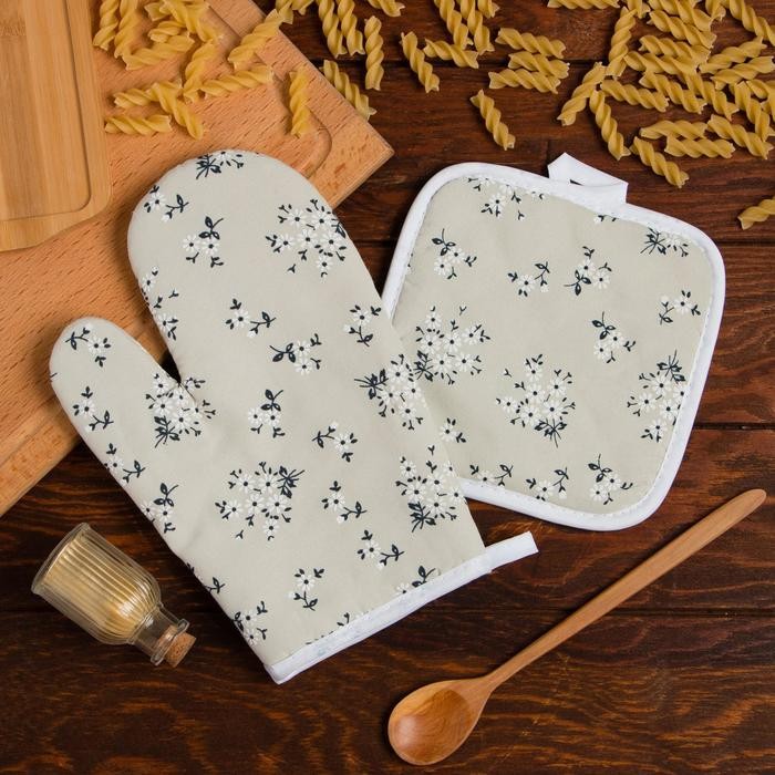 Кухонный набор Доляна «Ромашки», прихватка 17*17 см, рукавица 26*16 см,100% п/э