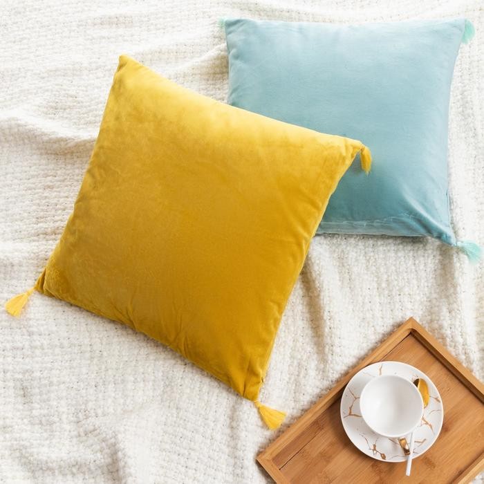 Наволочка на подушку с кисточками Этель цвет голубой, 45×45 см, 100% п/э, велюр