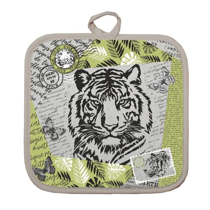 Прихватка Тигр винтаж 18×18 см, лен 50%, хлопок 50%, 160г/м2