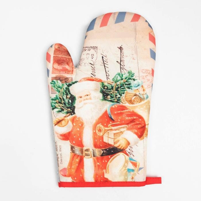 Кухонный новогодний набор Доляна «Новый Год», прихватка17х17см, варежка-прихватка 26×16 см,100% п/э