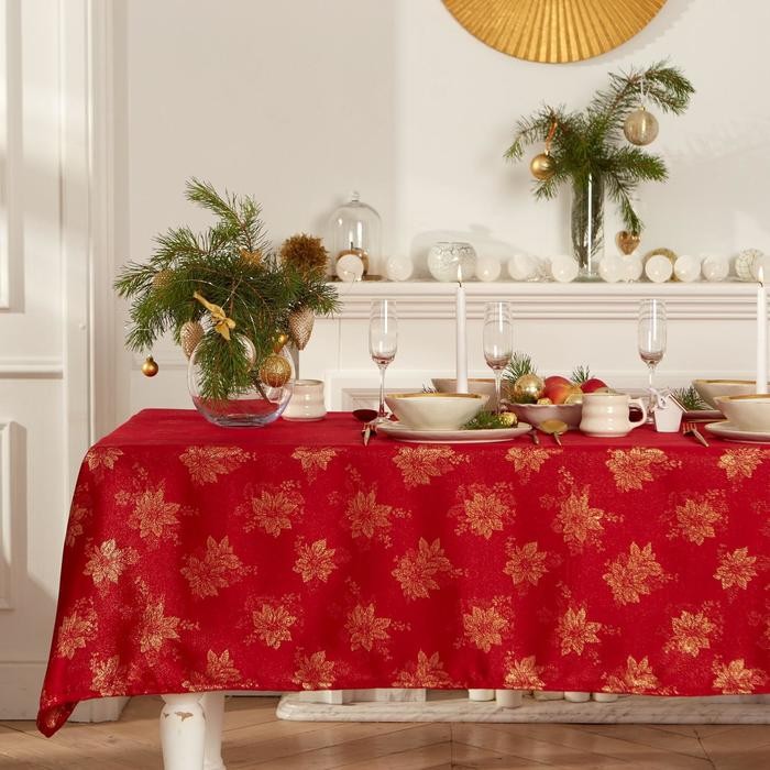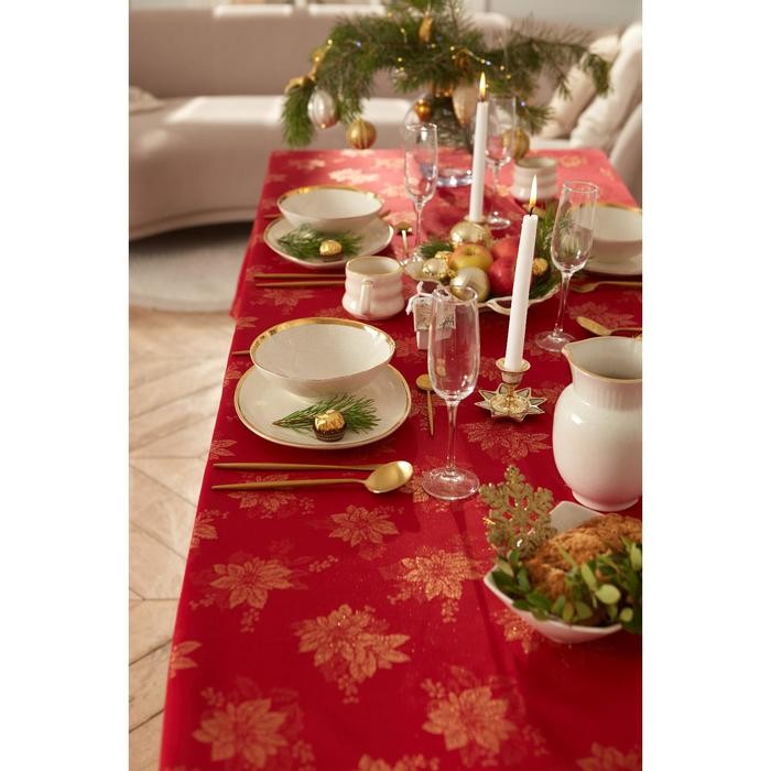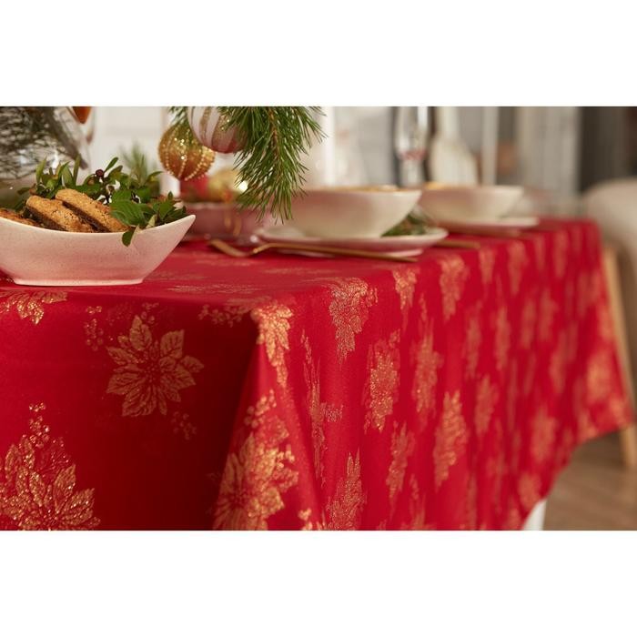 Скатерть Этель «Пуансеттия» цв.красный, 142*220 +/-3 см, 115 ±10 гр,100%