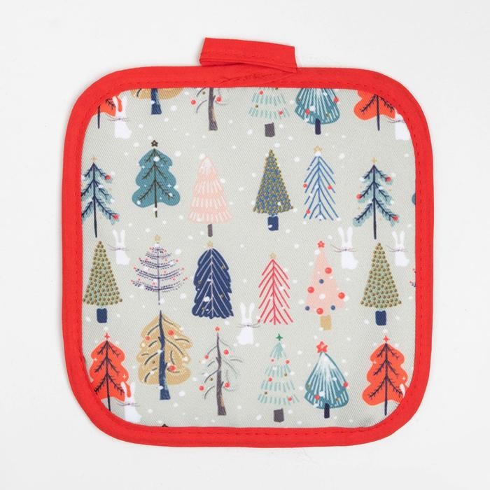 Кухонный новогодний набор Доляна «Новогодний лес», прихватка 17х17см, варежка-прихватка 26×16 см,100% п/э