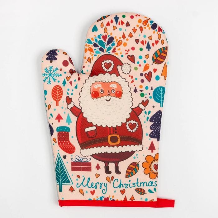 Кухонный новогодний набор Доляна «Санта», прихватка 17*17 см, варежка 26*16 см,100% п/э