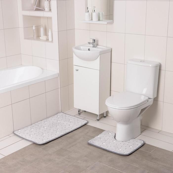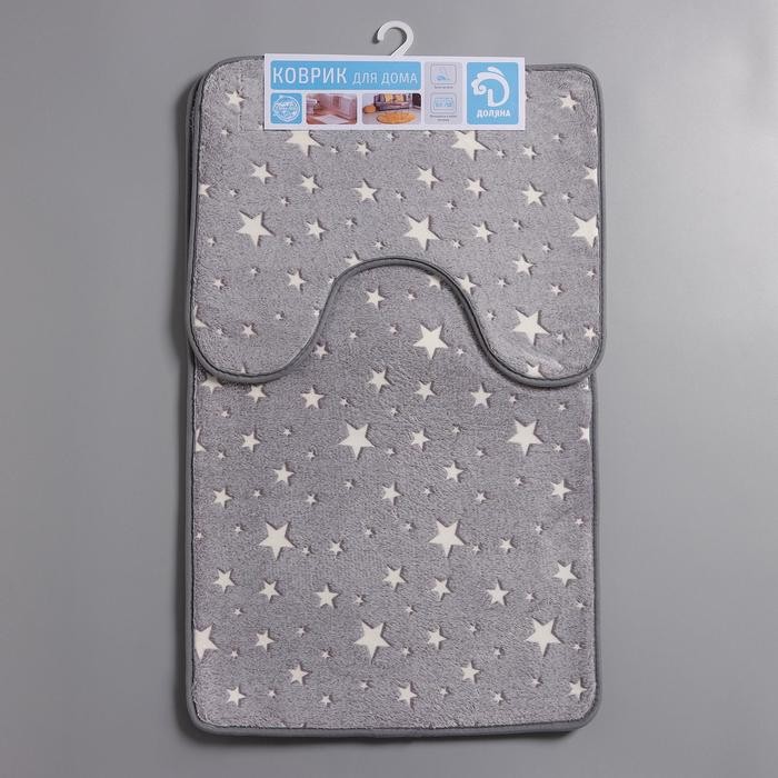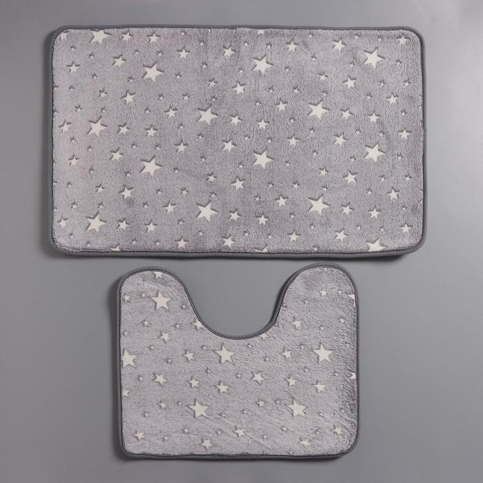 Набор ковриков для ванной и туалета Доляна «Светящиеся звезды», 2 шт: 50×80, 50×40 см, цвет серый