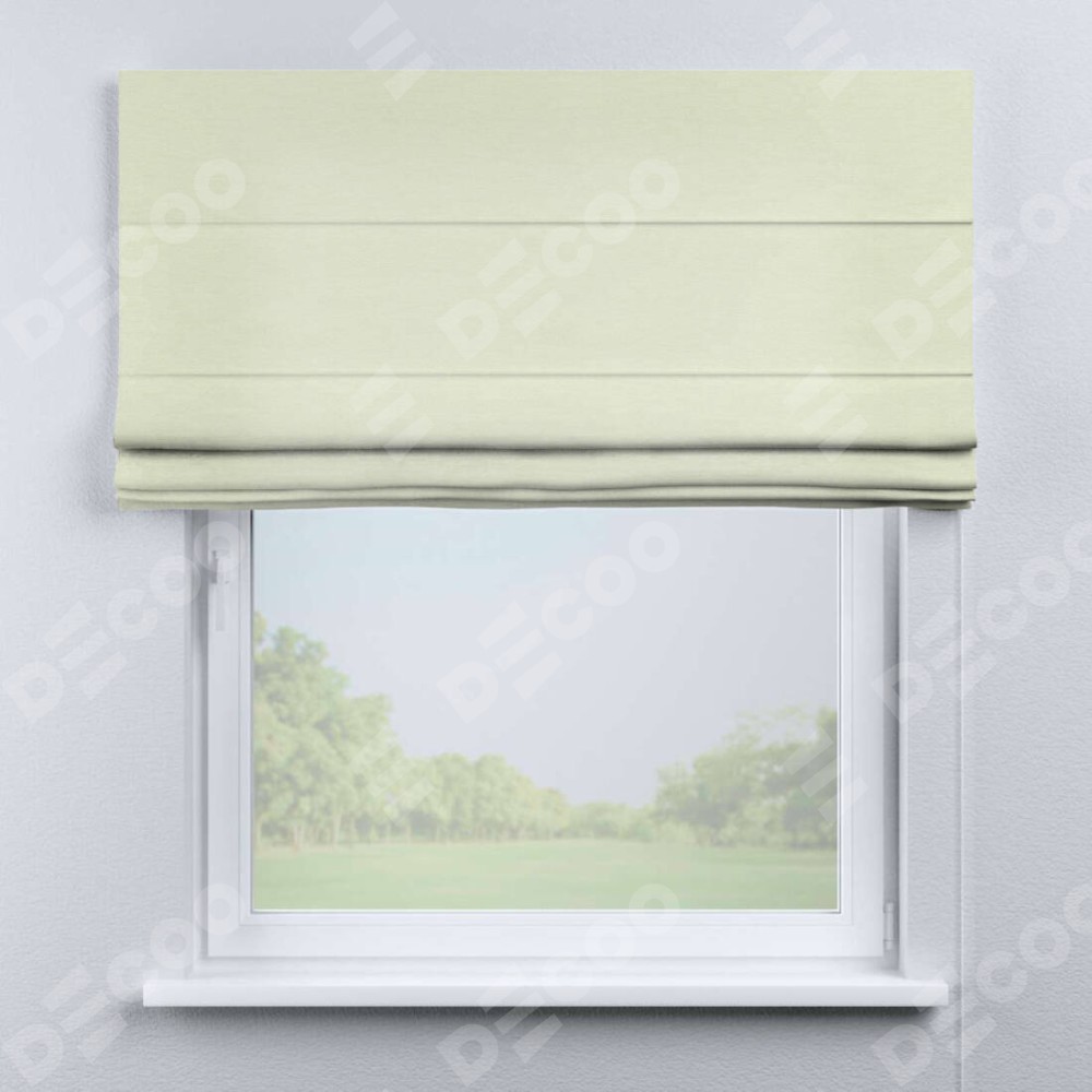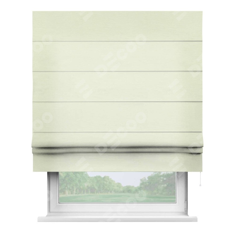 Римская штора производителя «Cortin», используется для проёма, пошита из ткани вельвет молочный, артикул ткани 85536. Имеет универсальный механизм и подходит для монтажа: на потолок, на стену и в нишу.