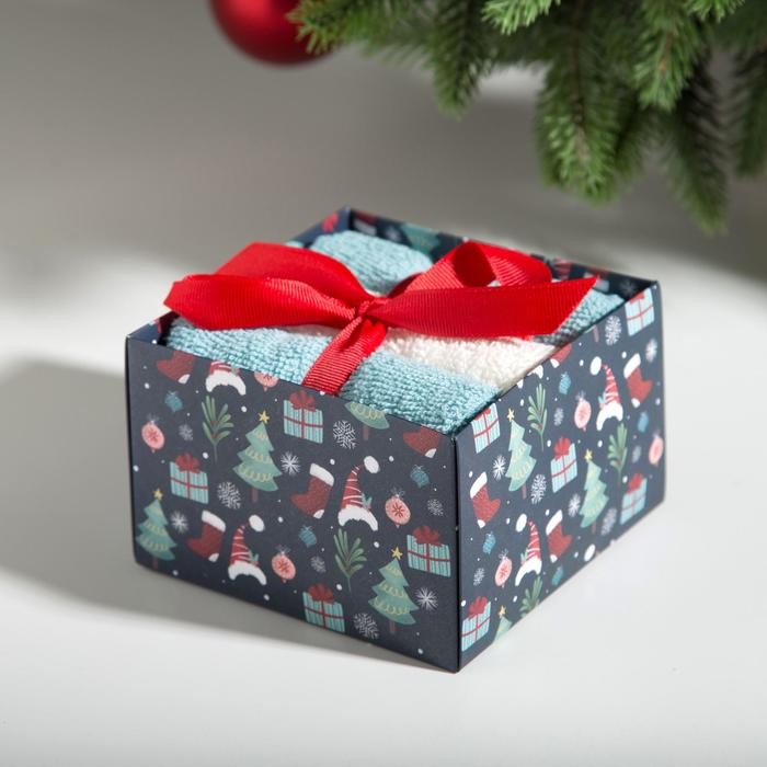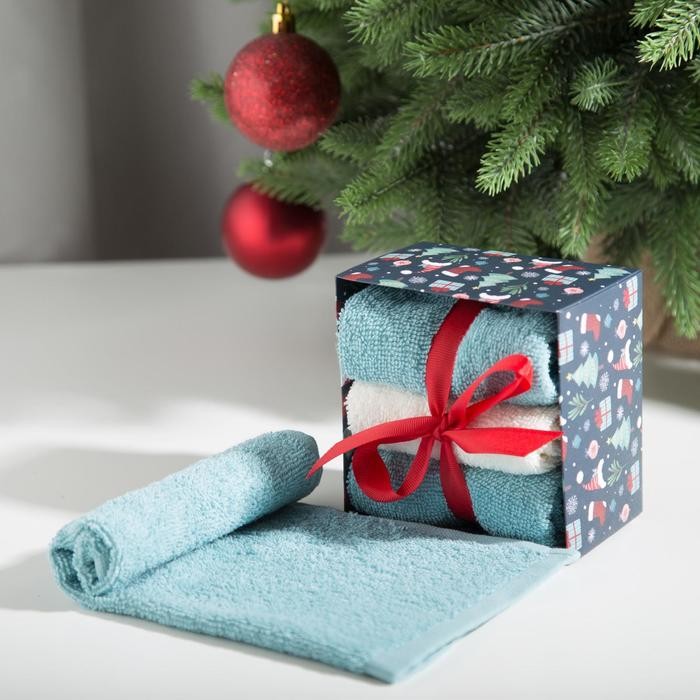 Набор махровых полотенец Этель «Новогодние забавы» 30×30 см — 3 шт, хлопок 340гр/м2