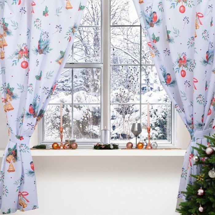 Комплект штор д/кухни с подхватами «Christmas wreaths» 145х180см-2 шт., габардин