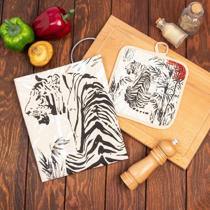 Кухонный набор Тигр Япония (полотенце 45×60+прихватка 18×18) лен 50%, хл 50%, 160г/м2