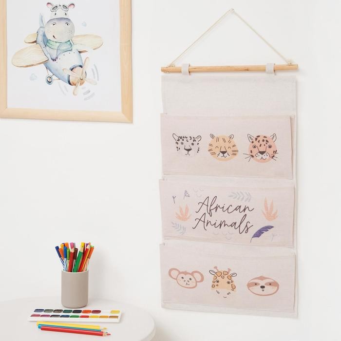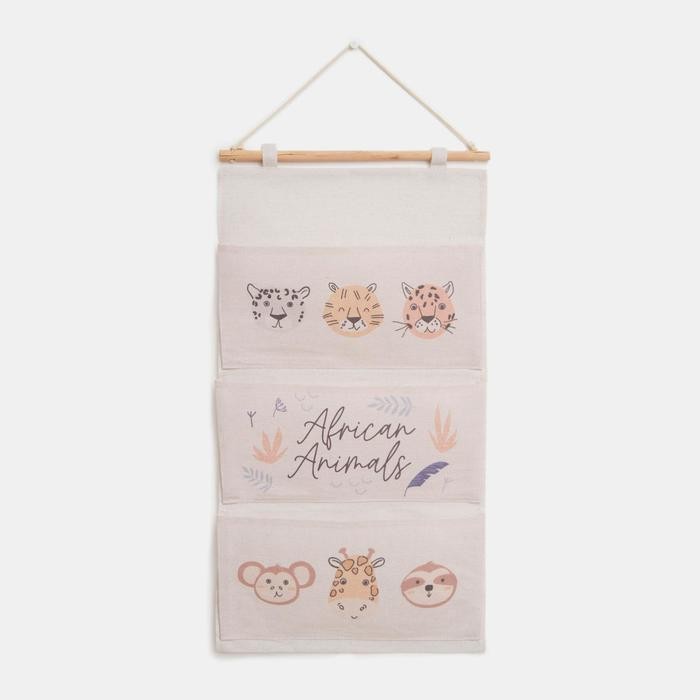 Кармашек текстильный Этель «African animals», 3 отделения, 34*63,5 см