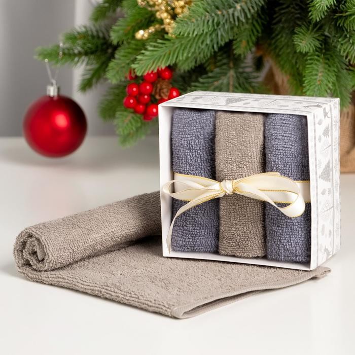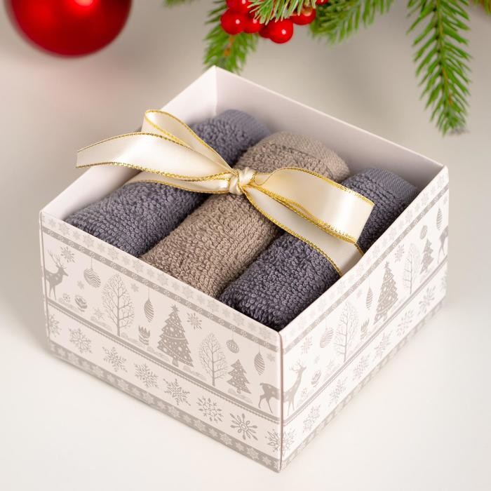 Набор махровых полотенец Этель «Снежинки» 30×30 см — 3 шт, хлопок 340гр/м2