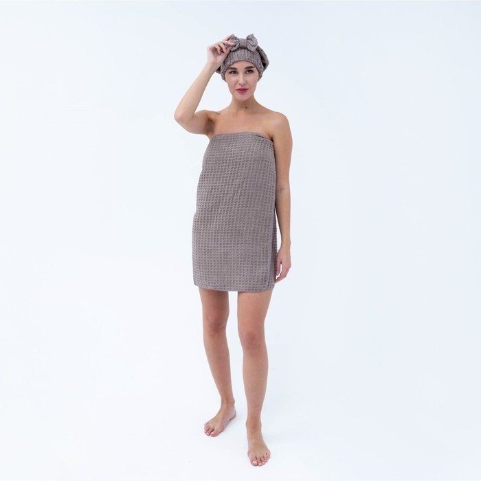 Набор для бани и ванной Этель «Вафля» полотенце 70*140 см+чалма 21*25 см, цв.коричневый