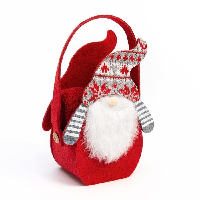 Полотенце в корзинке Экономь и Я «Гномик» 30*60 см, цв. бордовый, 100%хл, 320 г/м2