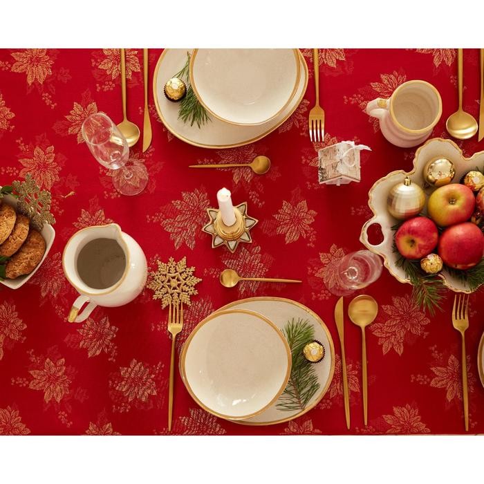 Скатерть Этель «Пуансеттия» цв.красный, 142*180 +/-3 см, 115 ±10 гр,100% п/э