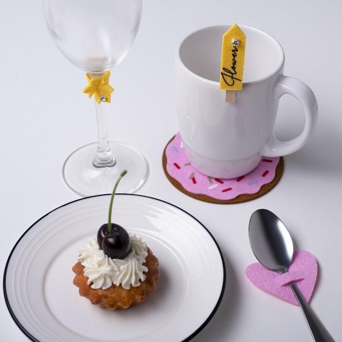 Набор для декора столовых предметов «Love» 4 шт, розовый, 5,4×5 см, 100% п/э, фетр