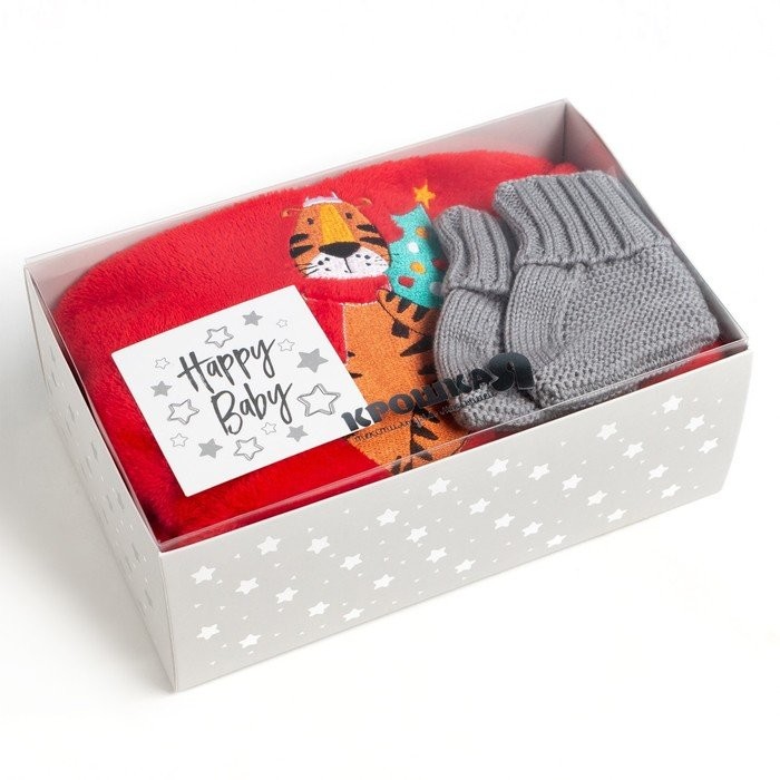 Новогодний подарочный набор Крошка Я «Тигруля», плед 90х100см, пинетки 10−12 см
