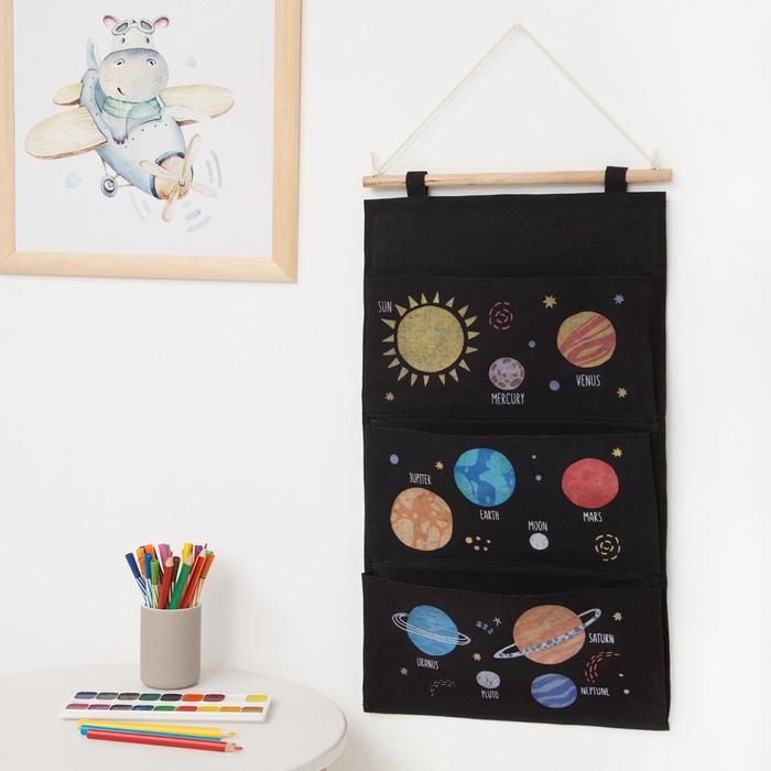 Кармашек текстильный Этель «Солнечная система», 3 отделения, 34*63,5 см