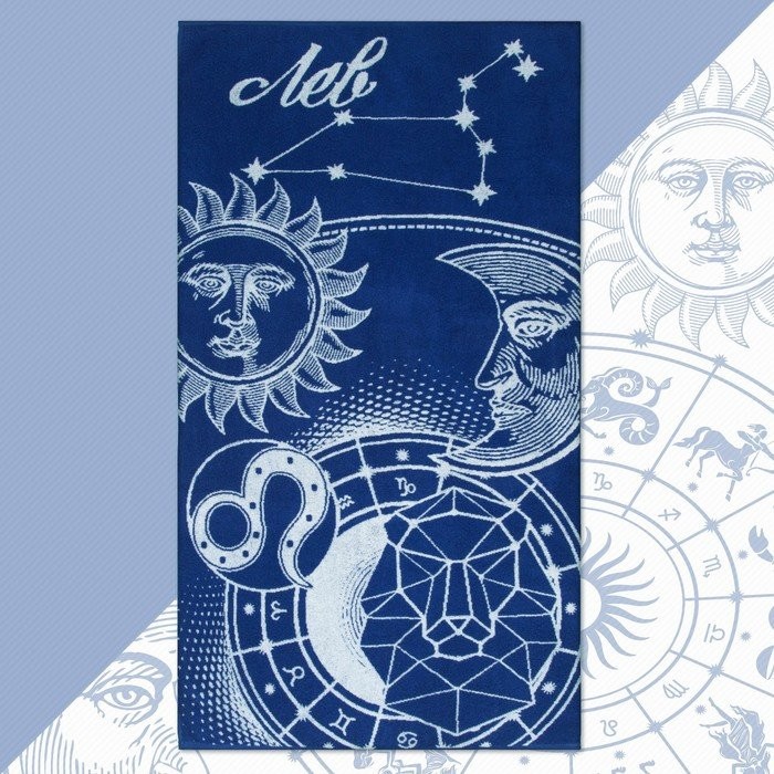 Полотенце махровое Этель «Знаки зодиака: Лев» синий, 67×130 см, 100% хлопок, 420гр/м2