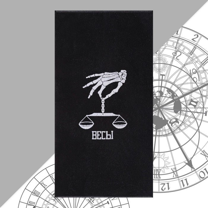 Полотенце махровое Этель «Знаки зодиака: Весы» чёрный, 67×130 см, 420 гр/м2, 100% хлопок