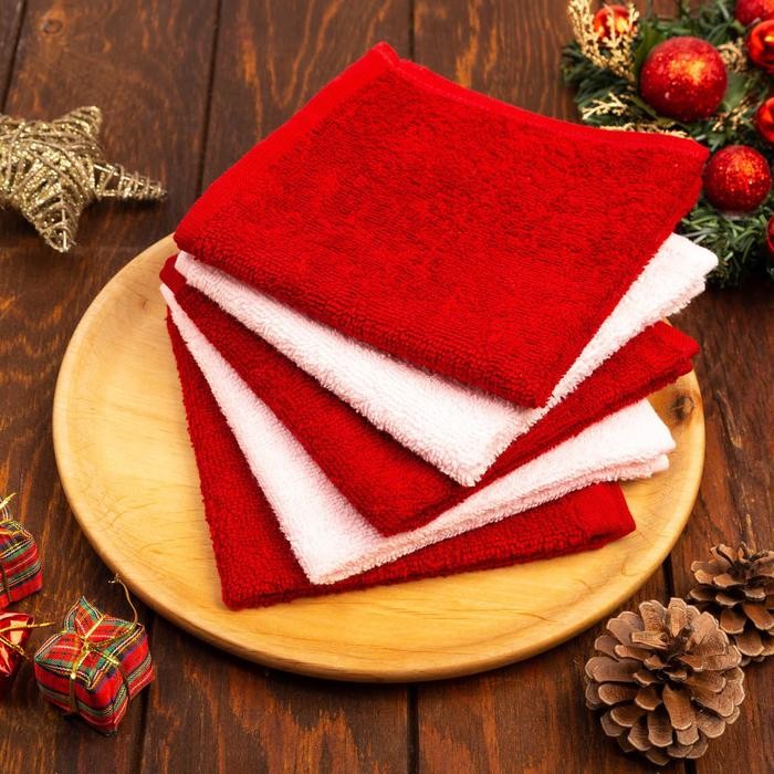 Новогодние полотенца (подарочный набор 5 шт.) Этель Merry Xmas 30×30 см -5шт, 100% хл, 340гр/м2
